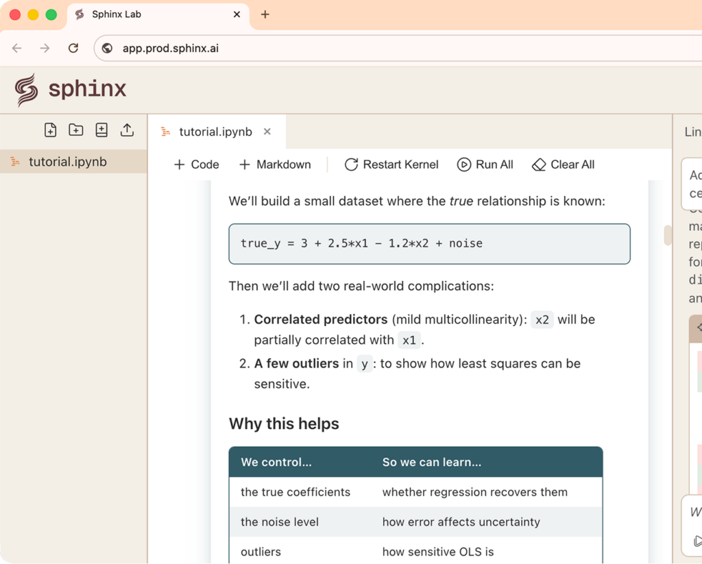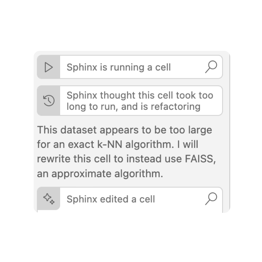 Sphinx learns with you, taking notes from past analyses to apply to future projects.